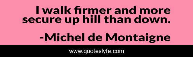 This page presents the quote "I walk firmer and more secure up hill than down.". Author of this quote is Michel de Montaigne. This quote is about victories, worthy,.