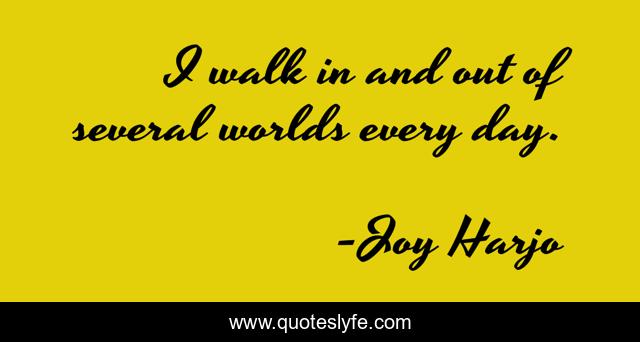 This page presents the quote "I walk in and out of several worlds every day.". Author of this quote is Joy Harjo. .