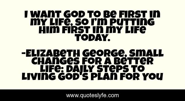 This page presents the quote "I want God to be first in my life, so I’m putting Him first in my life today.". Author of this quote is Elizabeth George, Small Changes for a Better Life: Daily Steps to Living God's Plan for You. This quote is about faith, life, christian, mercy, always, peace, today, god, love,.