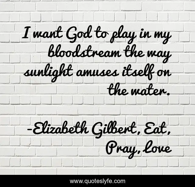 This page presents the quote "I want God to play in my bloodstream the way sunlight amuses itself on the water.". Author of this quote is Elizabeth Gilbert, Eat, Pray, Love. .