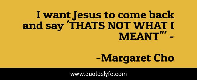 This page presents the quote "I want Jesus to come back and say 'THATS NOT WHAT I MEANT'" -". Author of this quote is Margaret Cho. This quote is about religion, christianity,.