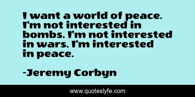 This page presents the quote "I want a world of peace. I'm not interested in bombs. I'm not interested in wars. I'm interested in peace.". Author of this quote is Jeremy Corbyn. This quote is about world, not interested,.