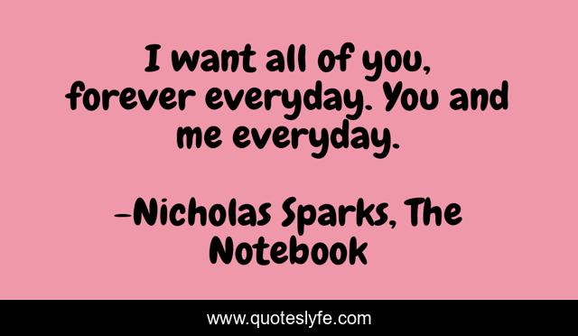 "Nicholas Sparks, The Notebook Quotes." Quoteslyfe.com, 2025. Sat. 06 Dec. 2025. <https://www.quoteslyfe.com/quote/I-want-all-of-you-forever-everyday-248530>.