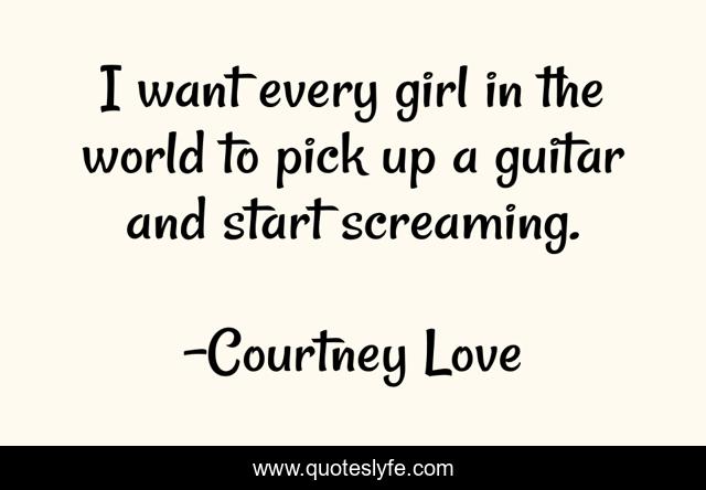 This page presents the quote "I want every girl in the world to pick up a guitar and start screaming.". Author of this quote is Courtney Love. This quote is about confidence, positive, motivational, music, optimistic, courtney-love,.