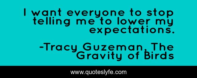 This page presents the quote "I want everyone to stop telling me to lower my expectations.". Author of this quote is Tracy Guzeman, The Gravity of Birds. .