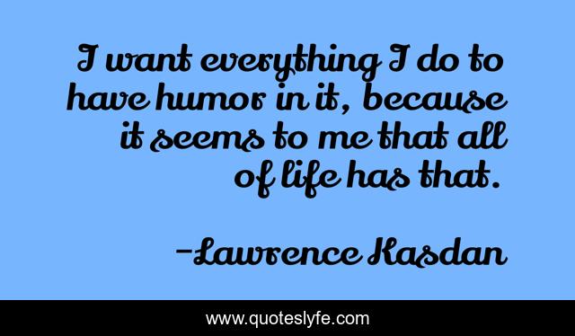 This page presents the quote "I want everything I do to have humor in it, because it seems to me that all of life has that.". Author of this quote is Lawrence Kasdan. This quote is about me, life,.