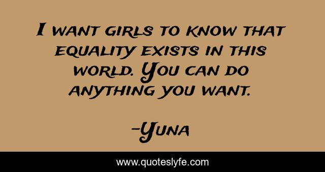 This page presents the quote "I want girls to know that equality exists in this world. You can do anything you want.". Author of this quote is Yuna. .