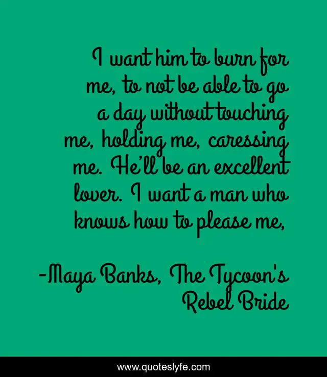 This page presents the quote "I want him to burn for me, to not be able to go a day without touching me, holding me, caressing me. He’ll be an excellent lover. I want a man who knows how to please me, ". Author of this quote is Maya Banks, The Tycoon's Rebel Bride. .
