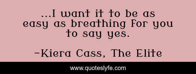 This page presents the quote "...I want it to be as easy as breathing for you to say yes.". Author of this quote is Kiera Cass, The Elite. This quote is about maxon, the-elite, america, the-selection-trilogy,.
