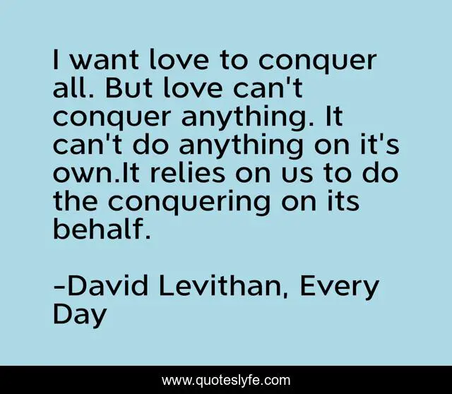 "David Levithan, Every Day Quotes." Quoteslyfe.com, 2025. Sun. 07 Dec. 2025. <https://www.quoteslyfe.com/quote/I-want-love-to-conquer-all-But-498>.