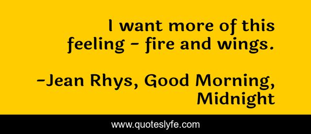 This page presents the quote "I want more of this feeling - fire and wings.". Author of this quote is Jean Rhys, Good Morning, Midnight. This quote is about fire, wings,.