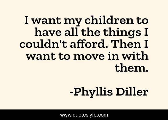 This page presents the quote "I want my children to have all the things I couldn't afford. Then I want to move in with them.". Author of this quote is Phyllis Diller. This quote is about move, children,.