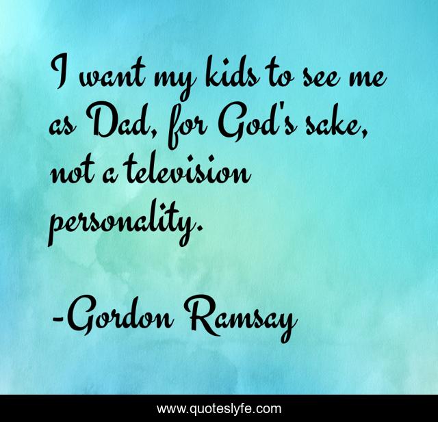 This page presents the quote "I want my kids to see me as Dad, for God's sake, not a television personality.". Author of this quote is Gordon Ramsay. This quote is about me, god, personality,.