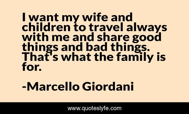 This page presents the quote "I want my wife and children to travel always with me and share good things and bad things. That's what the family is for.". Author of this quote is Marcello Giordani. This quote is about good, children, family,.