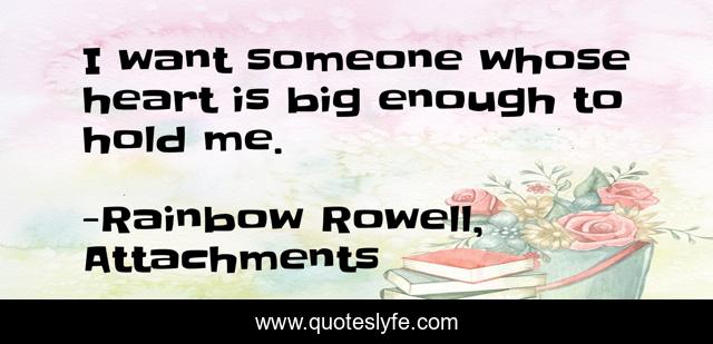 This page presents the quote "I want someone whose heart is big enough to hold me.". Author of this quote is Rainbow Rowell, Attachments. This quote is about life, love, affection,.