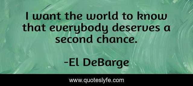 This page presents the quote "I want the world to know that everybody deserves a second chance.". Author of this quote is El DeBarge. This quote is about world, second chance,.