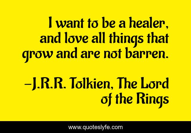 This page presents the quote "I want to be a healer, and love all things that grow and are not barren.". Author of this quote is J.R.R. Tolkien, The Lord of the Rings. This quote is about lord-of-the-rings, fantasy, éowyn, eowyn,.