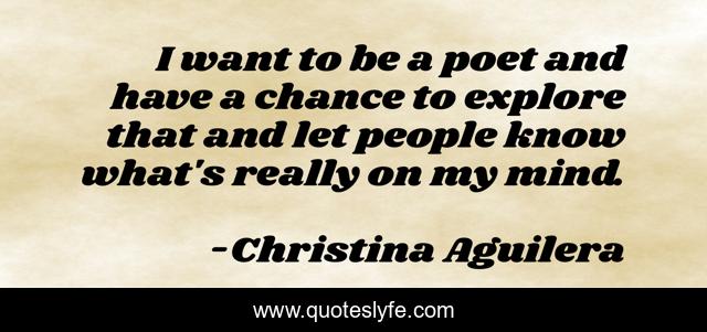 This page presents the quote "I want to be a poet and have a chance to explore that and let people know what's really on my mind.". Author of this quote is Christina Aguilera. This quote is about mind, people,.