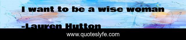 This page presents the quote "I want to be a wise woman". Author of this quote is Lauren Hutton. This quote is about woman, wise, lauren-hutton,.
