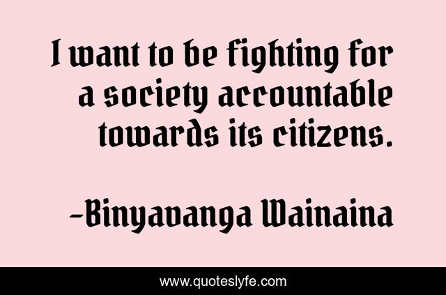 This page presents the quote "I want to be fighting for a society accountable towards its citizens.". Author of this quote is Binyavanga Wainaina. This quote is about citizens, fighting,.