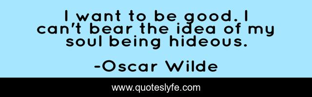 This page presents the quote "I want to be good. I can't bear the idea of my soul being hideous.". Author of this quote is Oscar Wilde. This quote is about oscar-wilde, dorian-gray,.