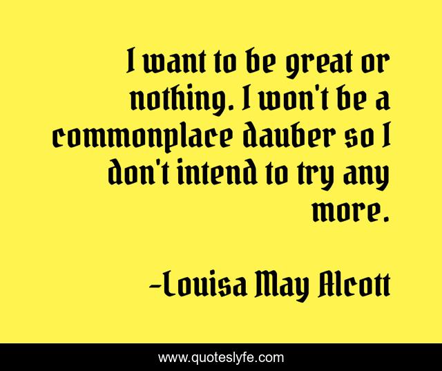 This page presents the quote "I want to be great or nothing. I won't be a commonplace dauber so I don't intend to try any more.". Author of this quote is Louisa May Alcott. .