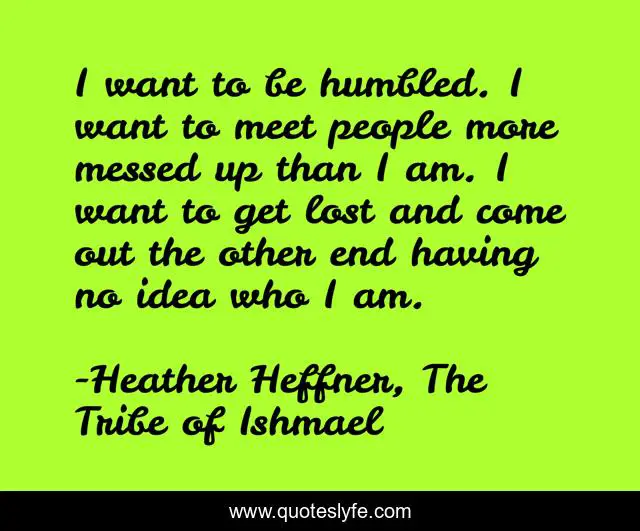 "Heather Heffner, The Tribe of Ishmael Quotes." Quoteslyfe.com, 2025. Fri. 05 Dec. 2025. <https://www.quoteslyfe.com/quote/I-want-to-be-humbled-I-want-151869>.