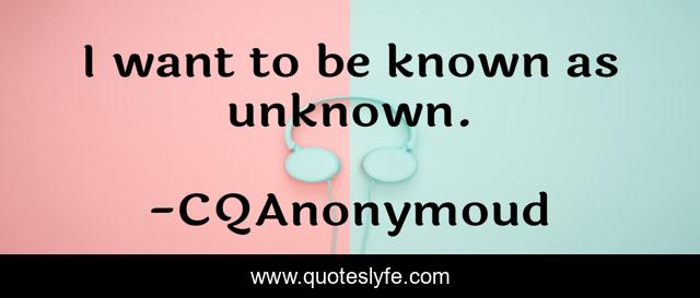 This page presents the quote "I want to be known as unknown.". Author of this quote is CQAnonymoud. This quote is about known, ambition,.