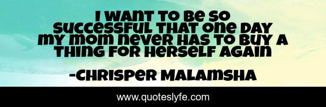 This page presents the quote "I want to be so successful that one day my mom never has to buy a thing for herself again". Author of this quote is Chrisper Malamsha. This quote is about returning-home, family,.