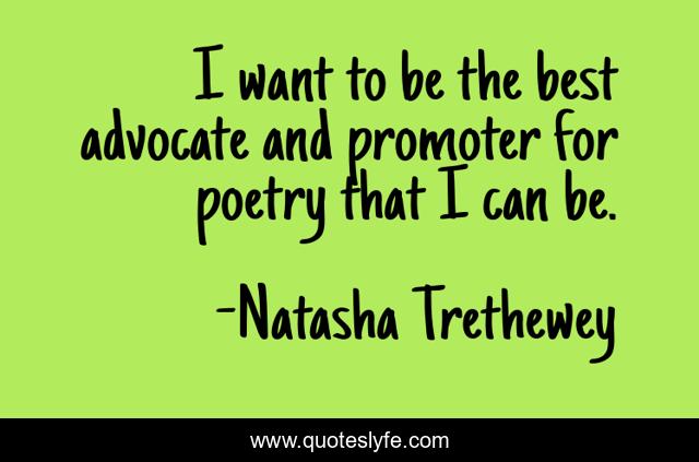 This page presents the quote "I want to be the best advocate and promoter for poetry that I can be.". Author of this quote is Natasha Trethewey. This quote is about best, i can,.