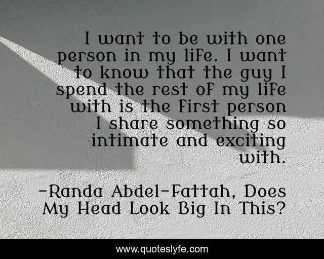 This page presents the quote "I want to be with one person in my life. I want to know that the guy I spend the rest of my life with is the first person I share something so intimate and exciting with.". Author of this quote is Randa Abdel-Fattah, Does My Head Look Big In This?. .