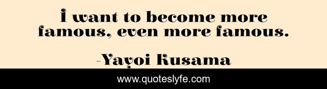 This page presents the quote "I want to become more famous, even more famous.". Author of this quote is Yayoi Kusama. This quote is about even, become,.
