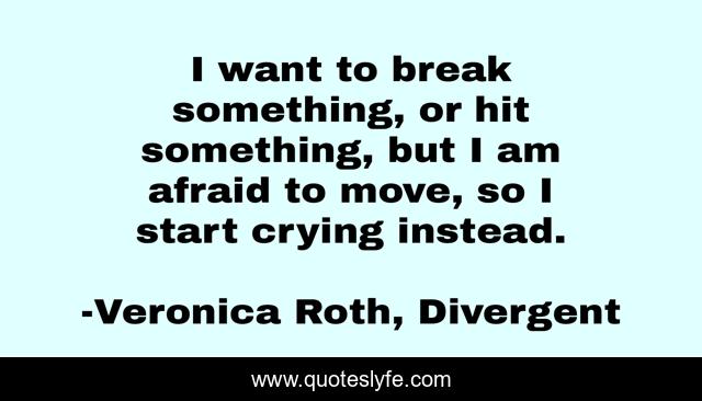 This page presents the quote "I want to break something, or hit something, but I am afraid to move, so I start crying instead.". Author of this quote is Veronica Roth, Divergent. This quote is about fear, crying, frustration,.