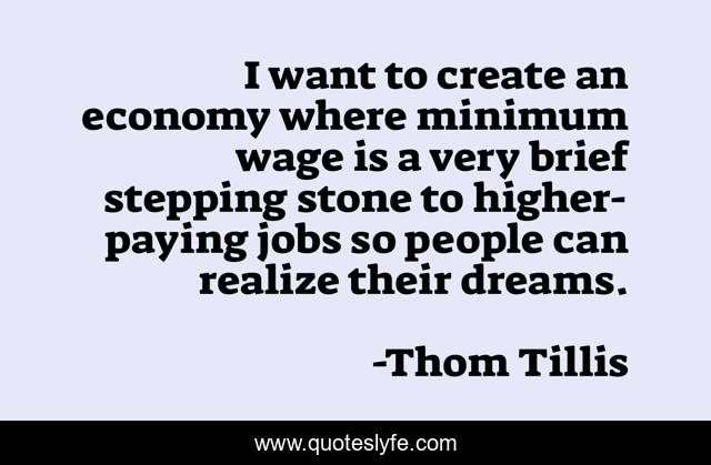 This page presents the quote "I want to create an economy where minimum wage is a very brief stepping stone to higher-paying jobs so people can realize their dreams.". Author of this quote is Thom Tillis. This quote is about stone, people,.