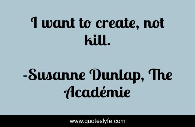 "Susanne Dunlap, The Académie Quotes." Quoteslyfe.com, 2025. Fri. 05 Dec. 2025. <https://www.quoteslyfe.com/quote/I-want-to-create-not-kill-53031>.