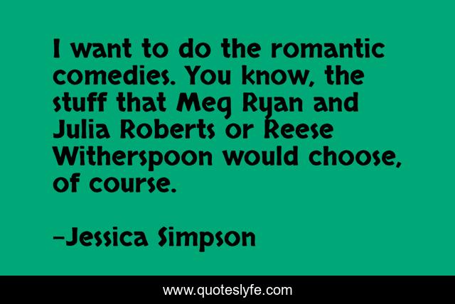 This page presents the quote "I want to do the romantic comedies. You know, the stuff that Meg Ryan and Julia Roberts or Reese Witherspoon would choose, of course.". Author of this quote is Jessica Simpson. .