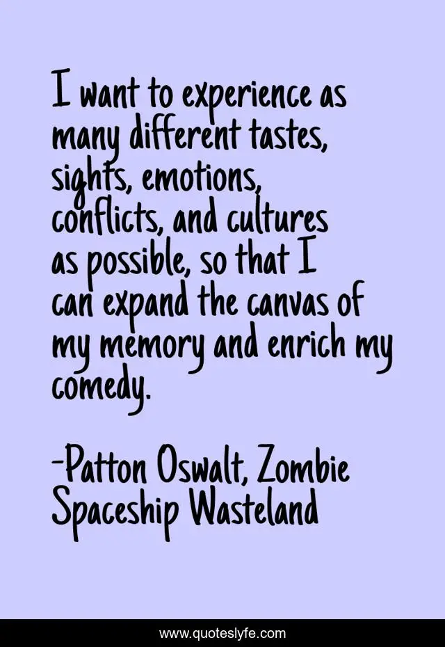 "Patton Oswalt, Zombie Spaceship Wasteland Quotes." Quoteslyfe.com, 2025. Sun. 07 Dec. 2025. <https://www.quoteslyfe.com/quote/I-want-to-experience-as-many-different-158542>.