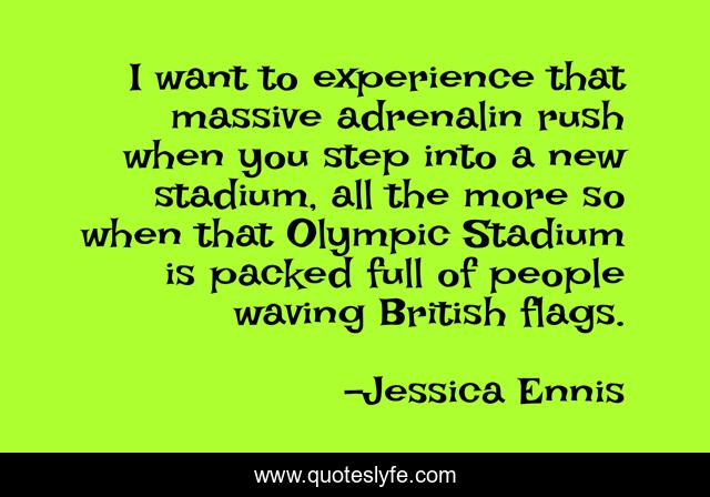 This page presents the quote "I want to experience that massive adrenalin rush when you step into a new stadium, all the more so when that Olympic Stadium is packed full of people waving British flags.". Author of this quote is Jessica Ennis. This quote is about step, people,.