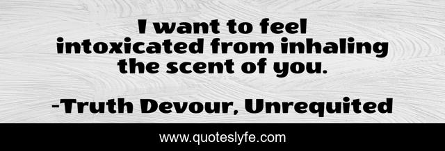 This page presents the quote "I want to feel intoxicated from inhaling the scent of you.". Author of this quote is Truth Devour, Unrequited. This quote is about faith, lovers, unrequited, lust, sated, romance, hope, dreams, wantin,.