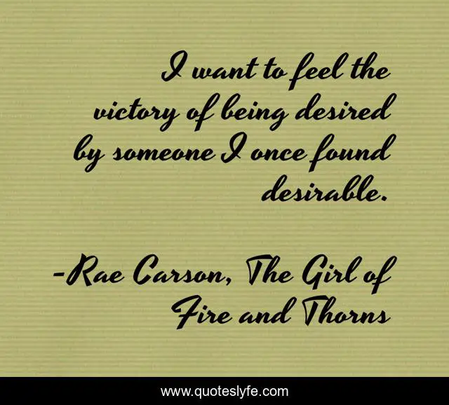 This page presents the quote "I want to feel the victory of being desired by someone I once found desirable.". Author of this quote is Rae Carson, The Girl of Fire and Thorns. This quote is about desire, love, victory, affection,.