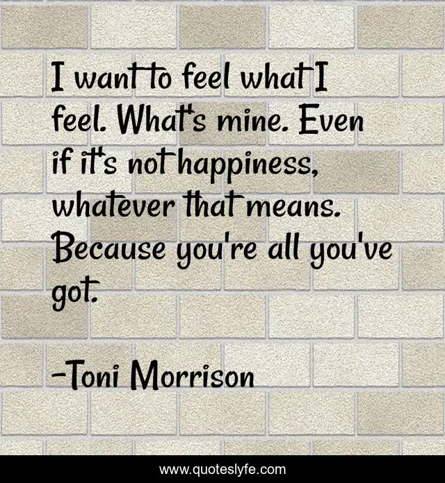 "Toni Morrison Quotes." Quoteslyfe.com, 2025. Sat. 06 Dec. 2025. <https://www.quoteslyfe.com/quote/I-want-to-feel-what-I-feel-16403>.