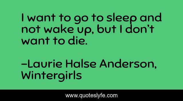 "Laurie Halse Anderson, Wintergirls Quotes." Quoteslyfe.com, 2025. Fri. 05 Dec. 2025. <https://www.quoteslyfe.com/quote/I-want-to-go-to-sleep-and-91070>.