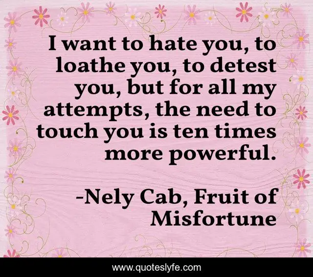"Nely Cab, Fruit of Misfortune Quotes." Quoteslyfe.com, 2025. Fri. 05 Dec. 2025. <https://www.quoteslyfe.com/quote/I-want-to-hate-you-to-loathe-82216>.
