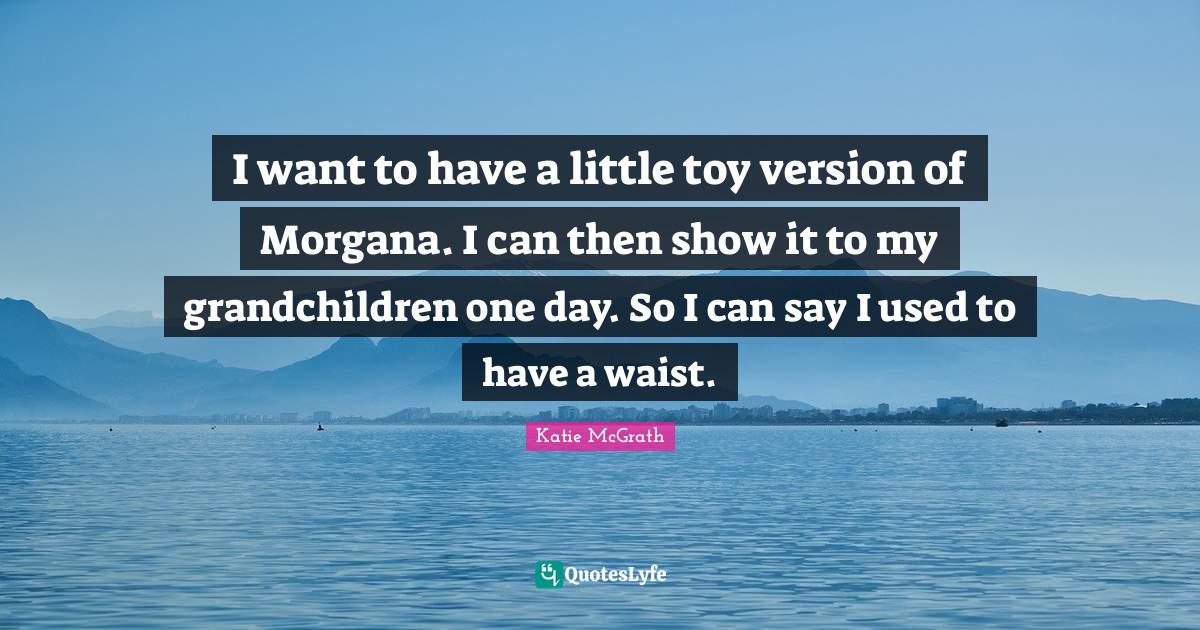 This page presents the quote "I want to have a little toy version of Morgana. I can then show it to my grandchildren one day. So I can say I used to have a waist.". Author of this quote is Katie McGrath. This quote is about my grandchildren, morgana, grandchildren, used, one day, i can, toys,.