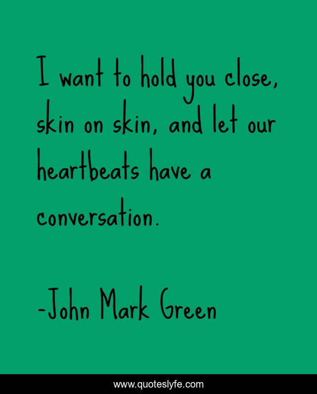This page presents the quote "I want to hold you close, skin on skin, and let our heartbeats have a conversation.". Author of this quote is John Mark Green. This quote is about relationships, heart, love, romantic, heartbeats, romance, passion, skin, intimacy,.