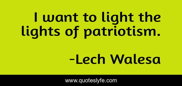 This page presents the quote "I want to light the lights of patriotism.". Author of this quote is Lech Walesa. This quote is about light, lights,.