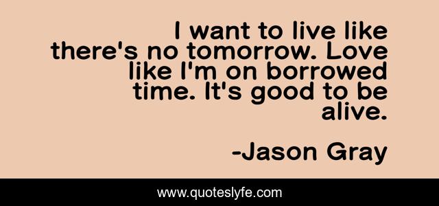 This page presents the quote "I want to live like there's no tomorrow. Love like I'm on borrowed time. It's good to be alive.". Author of this quote is Jason Gray. This quote is about love, living-now, live, passion, living-life-to-the-fullest, affection,.