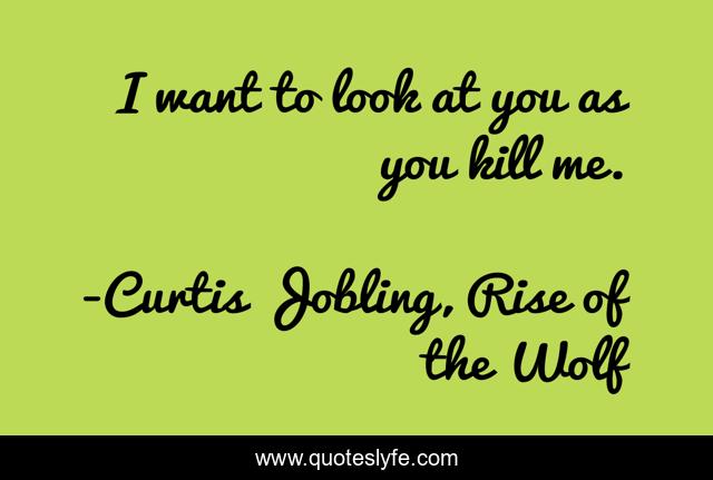 This page presents the quote "I want to look at you as you kill me.". Author of this quote is Curtis Jobling, Rise of the Wolf. This quote is about courage, death, strength,.
