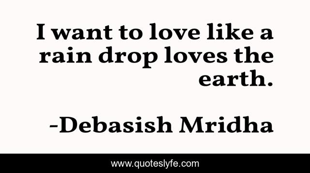 This page presents the quote "I want to love like a rain drop loves the earth.". Author of this quote is Debasish Mridha. This quote is about life, love, knowledge, inspirational, intelligence, philosophy, wisdom, quotes, affection,.