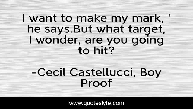 This page presents the quote "I want to make my mark, ' he says.But what target, I wonder, are you going to hit?". Author of this quote is Cecil Castellucci, Boy Proof. .